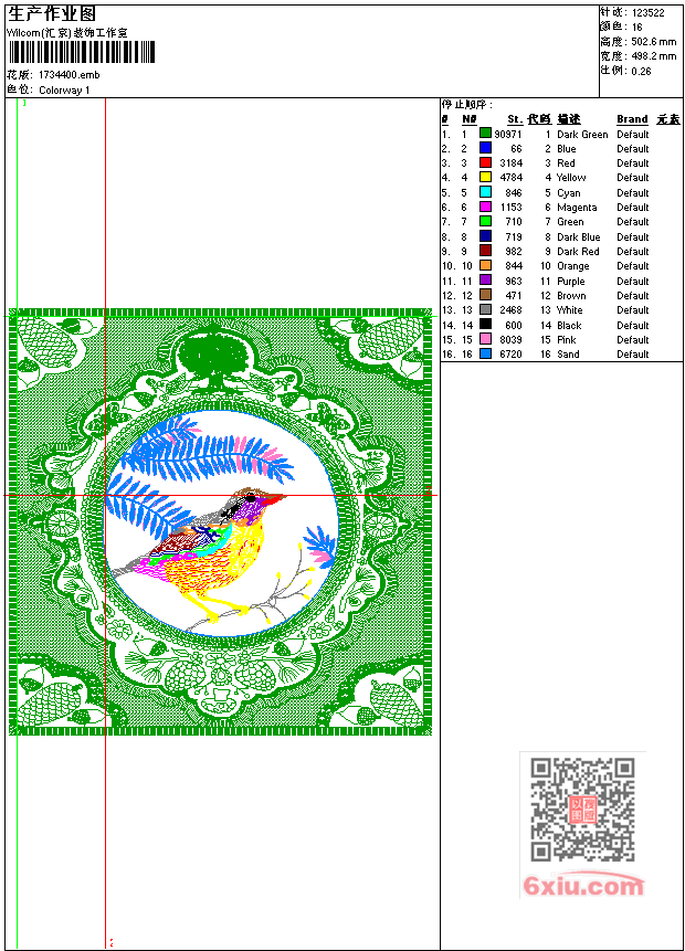 特种绣 抱枕鸟工艺精品 点此上传花版兑乐绣币/现金 emb花版参数: 大小:279.50 KB / 尺寸:498*503[毫米] / 针数:123522针 / 线色:16 / 格式:emb / 版本:7 版带文件需绣花软件方可打开,可配色打印导出各种格式或直接上机绣。如无绣花软件可下载1:1模拟效果图。 PNG图片信息:大小:3.3 (MB) /图宽*高:1885x1902(像素) 上传作者( 雷人*** ) 获得乐绣币:30个 emb下载 1:1图下载 关闭 相似花型推荐: 虎 新版猛虎下山工艺精品 人物 童子 小财神麒麟图工艺精品 龙凤 相敬如宾工艺精品 风景 乡村风光工艺精品 松 仙鹤工艺精品 梅花 鸟 喜上梅梢工艺精品 美女 人物 西施工艺精品 童子 传统 五子送福图工艺精品 字画 文字书法 工艺精品 卡通 天长地久工艺精品 风景 阁楼 塔工艺精品 松鹤朝阳工艺精品 老虎 四神兽 之 白虎 传统工艺精品 龙 双龙戏珠工艺精品 老虎乌龟富贵图工艺精品 上一个花样:吉祥 大吉 装饰 工艺精品 下一个花样:虎 新版猛虎下山工艺精品
