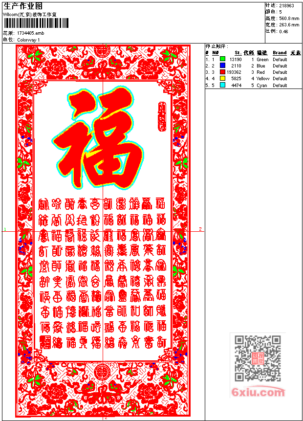 字画 百福图工艺精品 点此上传花版兑乐绣币/现金 emb花版参数: 大小:740.00 KB / 尺寸:264*561[毫米] / 针数:218963针 / 线色:5 / 格式:emb / 版本:7 版带文件需绣花软件方可打开,可配色打印导出各种格式或直接上机绣。如无绣花软件可下载1:1模拟效果图。 PNG图片信息:大小:2.3 (MB) /图宽*高:998x2122(像素) 上传作者( 雷人*** ) 获得乐绣币:30个 emb下载 1:1图下载 关闭 相似花型推荐: 马 八骏奔腾工艺精品 人物 头像 美女 奥黛丽赫工艺精品 人物 特种绣 爱心天使工艺精品 吉祥 大吉 装饰 工艺精品 特种绣 抱枕鸟工艺精品 虎 新版猛虎下山工艺精品 人物 童子 小财神麒麟图工艺精品 龙凤 相敬如宾工艺精品 风景 乡村风光工艺精品 松 仙鹤工艺精品 梅花 鸟 喜上梅梢工艺精品 美女 人物 西施工艺精品 童子 传统 五子送福图工艺精品 字画 文字书法 工艺精品 卡通 天长地久工艺精品 上一个花样:春夏秋冬-菊花工艺精品 下一个花样:马 八骏奔腾工艺精品