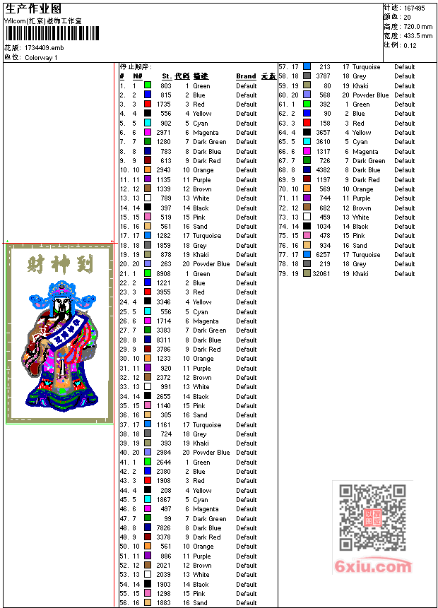 人物 财神到工艺精品 点此上传花版兑乐绣币/现金 emb花版参数: 大小:316.00 KB / 尺寸:434*720[毫米] / 针数:167495针 / 线色:20 / 格式:emb / 版本:7 版带文件需绣花软件方可打开,可配色打印导出各种格式或直接上机绣。如无绣花软件可下载1:1模拟效果图。 PNG图片信息:大小:4.3 (MB) /图宽*高:1640x2724(像素) 上传作者( 雷人*** ) 获得乐绣币:30个 emb下载 1:1图下载 关闭 相似花型推荐: 蝴蝶 花朵 大自然工艺精品 鹰 对联 中堂 大展鸿图工艺精品 春夏秋冬-菊花工艺精品 字画 百福图工艺精品 马 八骏奔腾工艺精品 人物 头像 美女 奥黛丽赫工艺精品 人物 特种绣 爱心天使工艺精品 吉祥 大吉 装饰 工艺精品 特种绣 抱枕鸟工艺精品 虎 新版猛虎下山工艺精品 人物 童子 小财神麒麟图工艺精品 龙凤 相敬如宾工艺精品 风景 乡村风光工艺精品 松 仙鹤工艺精品 梅花 鸟 喜上梅梢工艺精品 上一个花样:喜-特种绣-工艺精品 下一个花样:蝴蝶 花朵 大自然工艺精品