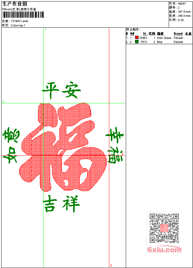 福工艺精品 点此上传花版兑乐绣币/现金 emb花版参数: 大小:156.50 KB / 尺寸:340*368[毫米] / 针数:44297针 / 线色:2 / 格式:emb / 版本:7 版带文件需绣花软件方可打开,可配色打印导出各种格式或直接上机绣。如无绣花软件可下载1:1模拟效果图。 PNG图片信息:大小:0.8 (MB) /图宽*高:1287x1391(像素) 上传作者( 雷人*** ) 获得乐绣币:30个 emb下载 1:1图下载 关闭 相似花型推荐: 喜-特种绣-工艺精品 人物 财神到工艺精品 蝴蝶 花朵 大自然工艺精品 鹰 对联 中堂 大展鸿图工艺精品 春夏秋冬-菊花工艺精品 字画 百福图工艺精品 马 八骏奔腾工艺精品 人物 头像 美女 奥黛丽赫工艺精品 人物 特种绣 爱心天使工艺精品 吉祥 大吉 装饰 工艺精品 特种绣 抱枕鸟工艺精品 虎 新版猛虎下山工艺精品 人物 童子 小财神麒麟图工艺精品 龙凤 相敬如宾工艺精品 风景 乡村风光工艺精品 上一个花样:花瓶龙工艺精品 下一个花样:喜-特种绣-工艺精品