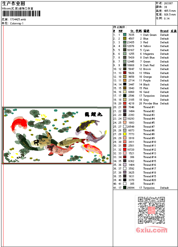 鱼 吉祥 九鲤图工艺精品 点此上传花版兑乐绣币/现金 emb花版参数: 大小:1.03 MB / 尺寸:927*485[毫米] / 针数:263387针 / 线色:39 / 格式:emb / 版本:7 版带文件需绣花软件方可打开,可配色打印导出各种格式或直接上机绣。如无绣花软件可下载1:1模拟效果图。 PNG图片信息:大小:5.7 (MB) /图宽*高:3505x1837(像素) 上传作者( 雷人*** ) 获得乐绣币:30个 emb下载 1:1图下载 关闭 相似花型推荐: 牡丹花 华堂春暖工艺精品 牡丹花-富贵满堂 工艺精品 鹰 大展宏图工艺精品 梅花 鸟 喜鹊登梅工艺精品 鸟 木棉花 南国红棉工艺精品 水果心形 工艺精品 荷花 莲花 香远逸清工艺精品 牛 五牛图 传统 吉祥 工艺精品 松鹤朝阳 吉祥 工艺精品 梅花 松鹤延年工艺精品 牡丹花 富贵 图工艺精品 马到成功工艺精品 花瓶龙工艺精品 福工艺精品 喜-特种绣-工艺精品 上一个花样:鸟 喜雀报春 大红花 牡丹花 工艺精品 下一个花样:牡丹花 华堂春暖工艺精品