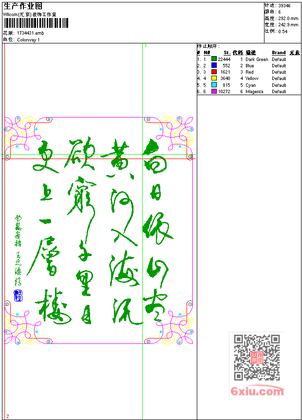 字画唐诗古诗工艺精品 点此上传花版兑乐绣币/现金 emb花版参数: 大小:95.00 KB / 尺寸:243*292[毫米] / 针数:39346针 / 线色:6 / 格式:emb / 版本:7 版带文件需绣花软件方可打开,可配色打印导出各种格式或直接上机绣。如无绣花软件可下载1:1模拟效果图。 PNG图片信息:大小:0.4 (MB) /图宽*高:919x1105(像素) 上传作者( 雷人*** ) 获得乐绣币:30个 emb下载 1:1图下载 关闭 相似花型推荐: 头像 脸谱 长命百岁工艺精品 风景 船 一帆风顺工艺精品 凤凰 心心相印工艺精品 人物 关羽 协天上帝-关公工艺精品 鸟 喜雀报春 大红花 牡丹花 工艺精品 鱼 吉祥 九鲤图工艺精品 牡丹花 华堂春暖工艺精品 牡丹花-富贵满堂 工艺精品 鹰 大展宏图工艺精品 梅花 鸟 喜鹊登梅工艺精品 鸟 木棉花 南国红棉工艺精品 水果心形 工艺精品 荷花 莲花 香远逸清工艺精品 牛 五牛图 传统 吉祥 工艺精品 松鹤朝阳 吉祥 工艺精品 上一个花样:红玫瑰花十字绣工艺精品 下一个花样:头像 脸谱 长命百岁工艺精品