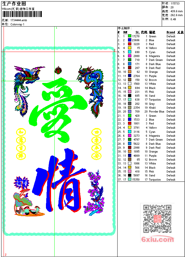 龙凤 爱情工艺精品 点此上传花版兑乐绣币/现金 emb花版参数: 大小:404.50 KB / 尺寸:263*440[毫米] / 针数:115733针 / 线色:20 / 格式:emb / 版本:7 版带文件需绣花软件方可打开,可配色打印导出各种格式或直接上机绣。如无绣花软件可下载1:1模拟效果图。 PNG图片信息:大小:1.4 (MB) /图宽*高:994x1663(像素) 上传作者( 雷人*** ) 获得乐绣币:30个 emb下载 1:1图下载 关闭 相似花型推荐: 龙凤工艺精品 花瓶水仙花工艺精品 招财进宝工艺精品传统字 人物账神到工艺精品 船-吉祥如意-工艺精品 鸟 燕子工艺精品 鹰 大展鸿图雄鹰展翅工艺精品 人物 小龙女刘亦菲工艺精品 家和万事兴十字绣工艺精品 牡丹花大红花 工艺精品 红玫瑰花十字绣工艺精品 字画唐诗古诗工艺精品 头像 脸谱 长命百岁工艺精品 风景 船 一帆风顺工艺精品 凤凰 心心相印工艺精品 上一个花样:福如东海工艺精品字画 下一个花样:龙凤工艺精品