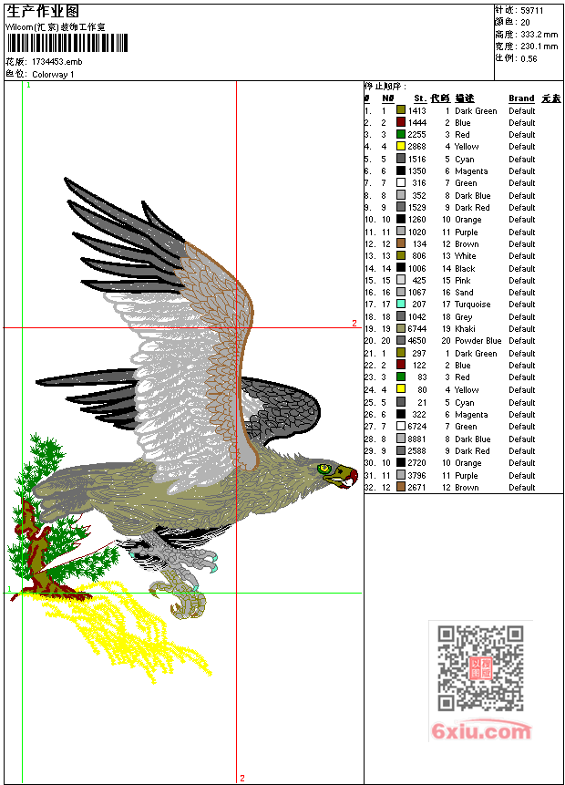 鹰-老鹰工艺精品-鸟 点此上传花版兑乐绣币/现金 emb花版参数: 大小:361.50 KB / 尺寸:230*333[毫米] / 针数:59711针 / 线色:20 / 格式:emb / 版本:e1.5 版带文件需绣花软件方可打开,可配色打印导出各种格式或直接上机绣。如无绣花软件可下载1:1模拟效果图。 PNG图片信息:大小:1.1 (MB) /图宽*高:871x1261(像素) 上传作者( 雷人*** ) 获得乐绣币:30个 emb下载 1:1图下载 关闭 相似花型推荐: 字画诗 书法 兰亭序工艺精品 孔雀工艺精品 人物 观音大士工艺精品 人物 观音工艺精品 鹤 龙 古代 官服 工艺精品 竹工艺精品 字画诗 书法 百忍成金工艺精品 福如东海工艺精品字画 龙凤 爱情工艺精品 龙凤工艺精品 花瓶水仙花工艺精品 招财进宝工艺精品传统字 人物账神到工艺精品 船-吉祥如意-工艺精品 鸟 燕子工艺精品 上一个花样:船 迎风破浪工艺精品 下一个花样:字画诗 书法 兰亭序工艺精品