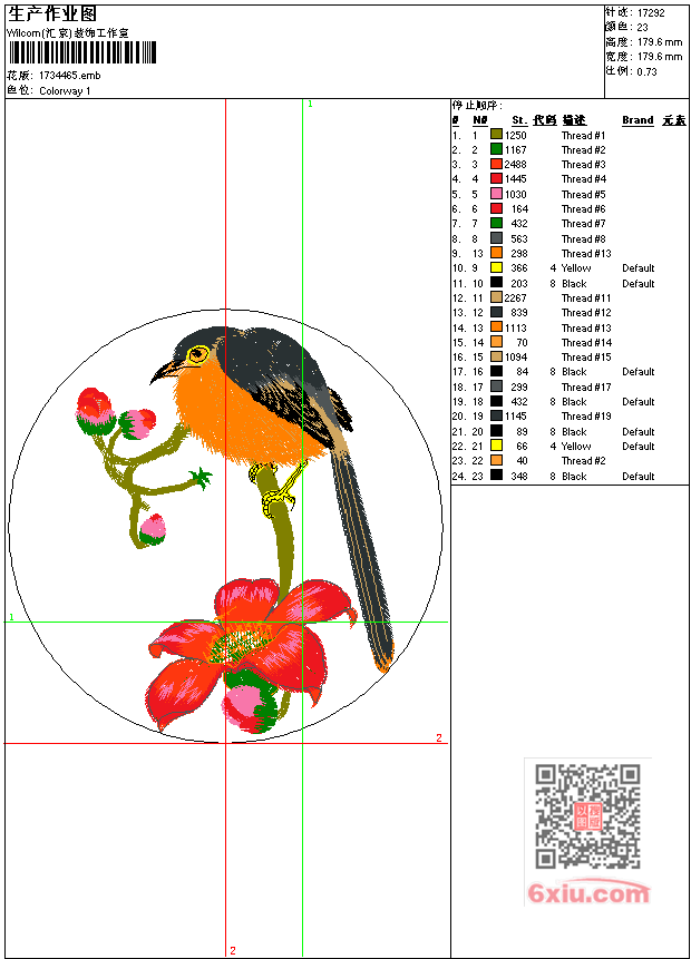 鸟 镜心花鸟工艺精品 点此上传花版兑乐绣币/现金 emb花版参数: 大小:117.50 KB / 尺寸:180*180[毫米] / 针数:17292针 / 线色:23 / 格式:emb / 版本:7 版带文件需绣花软件方可打开,可配色打印导出各种格式或直接上机绣。如无绣花软件可下载1:1模拟效果图。 PNG图片信息:大小:0.4 (MB) /图宽*高:680x680(像素) 上传作者( 雷人*** ) 获得乐绣币:30个 emb下载 1:1图下载 关闭 相似花型推荐: 大红花工艺精品 鹤工艺精品 竹寒梅工艺精品 牡丹花 鸟 富贵吉祥长寿图工艺精品 人物 财神爷 工艺精品 狼-雪狼工艺精品-动物 鸟 抱枕 工艺精品 喜 米奇 百年好合-婚庆工艺精品 寿字-八仙庆寿工艺精品 水果 松鼠工艺精品 船 迎风破浪工艺精品 鹰-老鹰工艺精品-鸟 字画诗 书法 兰亭序工艺精品 孔雀工艺精品 人物 观音大士工艺精品 上一个花样:人物 传统 雷神 工艺精品 下一个花样:大红花工艺精品