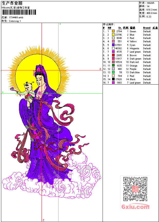 人物 送子观音工艺精品 点此上传花版兑乐绣币/现金 emb花版参数: 大小:434.50 KB / 尺寸:400*618[毫米] / 针数:190265针 / 线色:14 / 格式:emb / 版本:7 版带文件需绣花软件方可打开,可配色打印导出各种格式或直接上机绣。如无绣花软件可下载1:1模拟效果图。 PNG图片信息:大小:3.8 (MB) /图宽*高:1513x2339(像素) 上传作者( 雷人*** ) 获得乐绣币:30个 emb下载 1:1图下载 关闭 相似花型推荐: 风景 船 水乡工艺精品 人物 传统 雷神 工艺精品 鸟 镜心花鸟工艺精品 大红花工艺精品 鹤工艺精品 竹寒梅工艺精品 牡丹花 鸟 富贵吉祥长寿图工艺精品 人物 财神爷 工艺精品 狼-雪狼工艺精品-动物 鸟 抱枕 工艺精品 喜 米奇 百年好合-婚庆工艺精品 寿字-八仙庆寿工艺精品 水果 松鼠工艺精品 船 迎风破浪工艺精品 鹰-老鹰工艺精品-鸟 上一个花样:船 一帆风顺工艺精品 下一个花样:风景 船 水乡工艺精品