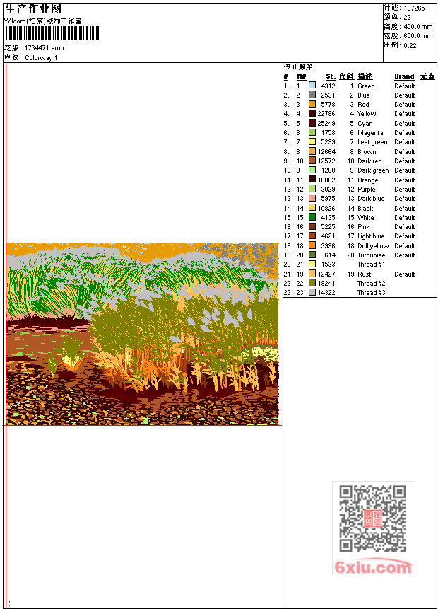 风景芦苇工艺精品 点此上传花版兑乐绣币/现金 emb花版参数: 大小:731.00 KB / 尺寸:600*400[毫米] / 针数:197265针 / 线色:23 / 格式:emb / 版本:7 版带文件需绣花软件方可打开,可配色打印导出各种格式或直接上机绣。如无绣花软件可下载1:1模拟效果图。 PNG图片信息:大小:7.8 (MB) /图宽*高:2270x1513(像素) 上传作者( 雷人*** ) 获得乐绣币:30个 emb下载 1:1图下载 关闭 相似花型推荐: 龙凤呈祥工艺精品 船 一帆风顺工艺精品 人物 送子观音工艺精品 风景 船 水乡工艺精品 人物 传统 雷神 工艺精品 鸟 镜心花鸟工艺精品 大红花工艺精品 鹤工艺精品 竹寒梅工艺精品 牡丹花 鸟 富贵吉祥长寿图工艺精品 人物 财神爷 工艺精品 狼-雪狼工艺精品-动物 鸟 抱枕 工艺精品 喜 米奇 百年好合-婚庆工艺精品 寿字-八仙庆寿工艺精品 上一个花样:风景 乱针绣 园林工艺精品 下一个花样:龙凤呈祥工艺精品
