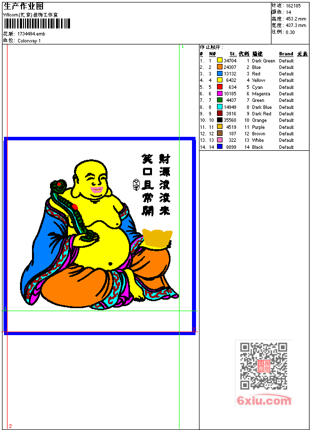 人物 和尚 笑佛-笑口且常开 财源滚滚来 工艺精品 点此上传花版兑乐绣币/现金 emb花版参数: 大小:274.50 KB / 尺寸:437*453[毫米] / 针数:162185针 / 线色:14 / 格式:emb / 版本:7 版带文件需绣花软件方可打开,可配色打印导出各种格式或直接上机绣。如无绣花软件可下载1:1模拟效果图。 PNG图片信息:大小:2.6 (MB) /图宽*高:1655x1715(像素) 上传作者( 雷人*** ) 获得乐绣币:30个 emb下载 1:1图下载 关闭 相似花型推荐: 鸟 小鸟工艺精品 男孩弹吉它工艺精品 字画 王曦之咏鹅工艺精品 女孩 人物 工艺精品 人物 圣母子工艺精品 民族灯笼羌绣工艺精品 人物 门神 传统 工艺精品 头像 人物 美少女工艺精品 马到功成工艺精品 马到成功工艺精品 风景园林工艺精品 人物 邓小平工艺精品 乱针绣 风景 秋意改工艺精品 乱针绣 风景 秋色如画工艺精品 女人工艺精品 上一个花样:寿 延年益寿工艺精品 下一个花样:鸟 小鸟工艺精品