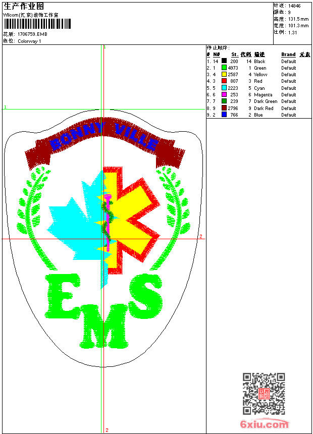 EMS章仔 点此上传花版兑乐绣币/现金 emb花版参数: 大小:68.00 KB / 尺寸:101*131[毫米] / 针数:14857针 / 线色:9 / 格式:emb / 版本:6 版带文件需绣花软件方可打开,可配色打印导出各种格式或直接上机绣。如无绣花软件可下载1:1模拟效果图。 PNG图片信息:大小:0.2 (MB) /图宽*高:384x498(像素) 上传作者( xuze*** ) 获得乐绣币:10个 emb下载 1:1图下载 关闭 相似花型推荐: 爆破队章仔 高山飞鸟 字母 字母 字母 巴掌 歼10战斗机 HOT章仔 武士吹喇叭 火龙地球 字母 工程队章仔 武士 篮球章仔 鸟叔章仔 上一个花样:摔跤人物 下一个花样:爆破队章仔