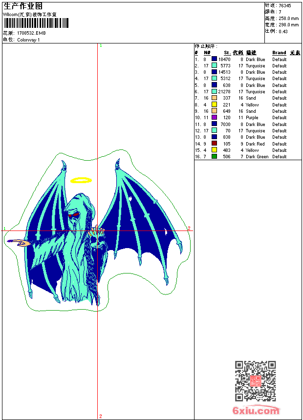 骷髅蝙蝠侠 点此上传花版兑乐绣币/现金 emb花版参数: 大小:167.00 KB / 尺寸:298*258[毫米] / 针数:76345针 / 线色:7 / 格式:emb / 版本:6 版带文件需绣花软件方可打开,可配色打印导出各种格式或直接上机绣。如无绣花软件可下载1:1模拟效果图。 PNG图片信息:大小:1.0 (MB) /图宽*高:1128x976(像素) 上传作者( ianm*** ) 获得乐绣币:30个 emb下载 1:1图下载 关闭 相似花型推荐: 章仔 眼晴 地球 奶牛 大海鱼 鲨鱼 怪物打球 鲨鱼 剑章仔 V 大海鱼 枫叶 鹰 怪兽 玉米 上一个花样:灯塔 下一个花样:章仔