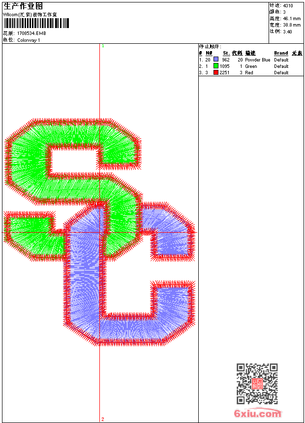 SC 点此上传花版兑乐绣币/现金 emb花版参数: 大小:25.00 KB / 尺寸:39*46[毫米] / 针数:4310针 / 线色:3 / 格式:emb / 版本:6 版带文件需绣花软件方可打开,可配色打印导出各种格式或直接上机绣。如无绣花软件可下载1:1模拟效果图。 PNG图片信息:大小:0.0 (MB) /图宽*高:147x175(像素) 上传作者( ianm*** ) 获得乐绣币:10个 emb下载 1:1图下载 关闭 相似花型推荐: 灯塔 骷髅蝙蝠侠 章仔 眼晴 地球 奶牛 大海鱼 鲨鱼 怪物打球 鲨鱼 剑章仔 V 大海鱼 枫叶 鹰 上一个花样:super bowl 下一个花样:灯塔