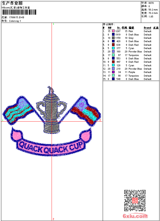 赛旗 点此上传花版兑乐绣币/现金 emb花版参数: 大小:67.00 KB / 尺寸:70*50[毫米] / 针数:8070针 / 线色:8 / 格式:emb / 版本:6 版带文件需绣花软件方可打开,可配色打印导出各种格式或直接上机绣。如无绣花软件可下载1:1模拟效果图。 PNG图片信息:大小:0.1 (MB) /图宽*高:266x190(像素) 上传作者( ianm*** ) 获得乐绣币:10个 emb下载 1:1图下载 关闭 相似花型推荐: buzz energy 麋鹿 驴头 足球 北极熊 74花仙子 骷髅 农民工上班路上 章仔 起亚KIA车标 字母 approved 牛头 黑熊 海欧 上一个花样:马 下一个花样:buzz energy