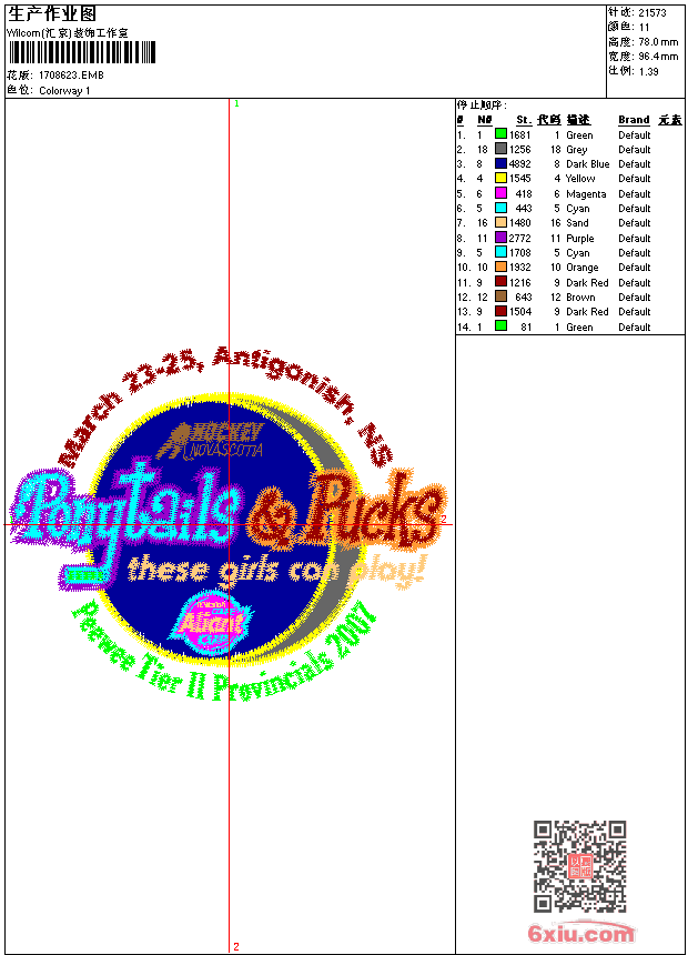 章仔 点此上传花版兑乐绣币/现金 emb花版参数: 大小:135.50 KB / 尺寸:96*78[毫米] / 针数:21573针 / 线色:11 / 格式:emb / 版本:6 版带文件需绣花软件方可打开,可配色打印导出各种格式或直接上机绣。如无绣花软件可下载1:1模拟效果图。 PNG图片信息:大小:0.2 (MB) /图宽*高:365x295(像素) 上传作者( ianm*** ) 获得乐绣币:10个 emb下载 1:1图下载 关闭 相似花型推荐: 保龄球 章仔 老鹰 公鸡 章仔 章仔 马 赛旗 buzz energy 麋鹿 驴头 足球 北极熊 74花仙子 骷髅 上一个花样:排骨鱼 下一个花样:保龄球