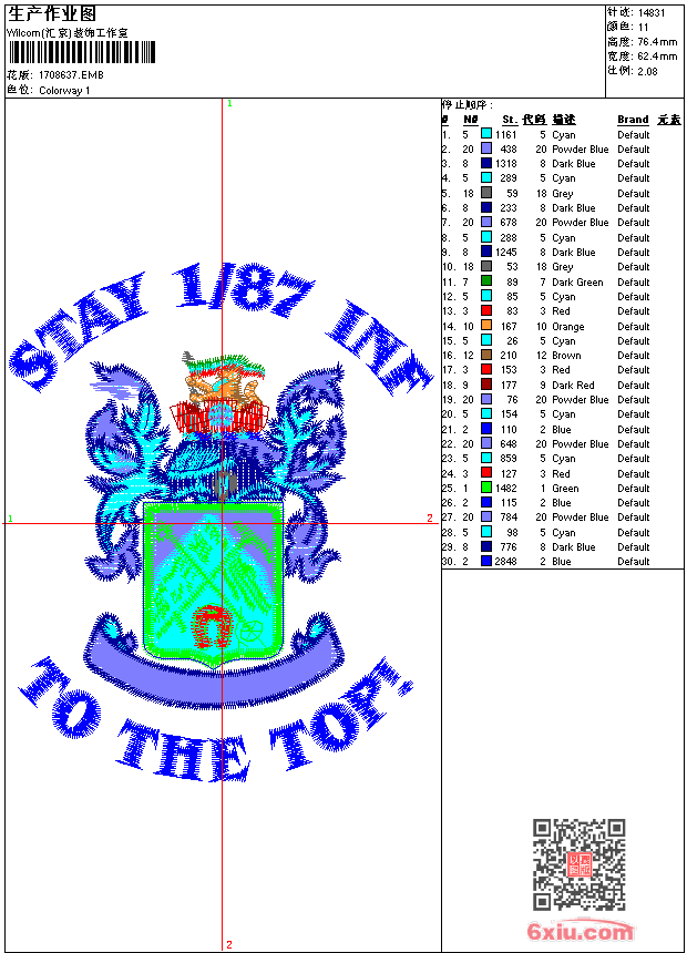 章仔 点此上传花版兑乐绣币/现金 emb花版参数: 大小:117.50 KB / 尺寸:62*76[毫米] / 针数:14831针 / 线色:11 / 格式:emb / 版本:6 版带文件需绣花软件方可打开,可配色打印导出各种格式或直接上机绣。如无绣花软件可下载1:1模拟效果图。 PNG图片信息:大小:0.1 (MB) /图宽*高:236x290(像素) 上传作者( ianm*** ) 获得乐绣币:10个 emb下载 1:1图下载 关闭 相似花型推荐: 章仔 章仔 海鱼 章仔火球 章仔鹰 章仔adidas 关爱老人 蜜蜂 章仔 旗 章仔羽毛球 旭日东升 排骨鱼 章仔 保龄球 上一个花样:狼 下一个花样:章仔