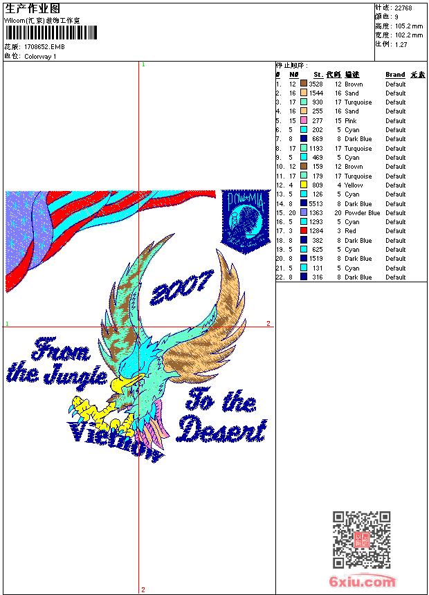 鹰 点此上传花版兑乐绣币/现金 emb花版参数: 大小:134.00 KB / 尺寸:102*105[毫米] / 针数:22768针 / 线色:9 / 格式:emb / 版本:6 版带文件需绣花软件方可打开,可配色打印导出各种格式或直接上机绣。如无绣花软件可下载1:1模拟效果图。 PNG图片信息:大小:0.2 (MB) /图宽*高:387x399(像素) 上传作者( 2618*** ) 获得乐绣币:10个 emb下载 1:1图下载 关闭 相似花型推荐: 诺亚方舟-船 凌志车标 鹰 马 拖拉机 豹 章仔武士 海鱼 脚踏实地 racing字母 星巴克starbucks coffee 章仔 花 狼 章仔 上一个花样:手掌 下一个花样:诺亚方舟-船