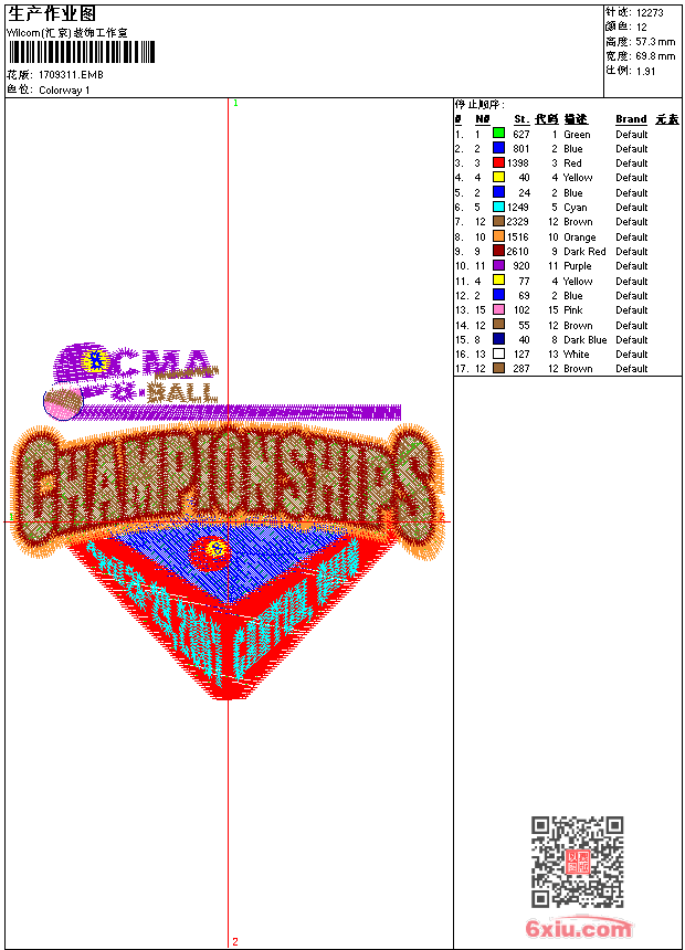 championsships 点此上传花版兑乐绣币/现金 emb花版参数: 大小:77.00 KB / 尺寸:70*57[毫米] / 针数:12274针 / 线色:12 / 格式:emb / 版本:6 版带文件需绣花软件方可打开,可配色打印导出各种格式或直接上机绣。如无绣花软件可下载1:1模拟效果图。 PNG图片信息:大小:0.1 (MB) /图宽*高:265x217(像素) 上传作者( 2618*** ) 获得乐绣币:10个 emb下载 1:1图下载 关闭 相似花型推荐: 章仔马头 飞机 打球 豹 高尔夫 章仔 大众车标 高尔夫 膺 狮子章仔 可口可乐 膺 喷火章仔 厨师 奶牛 上一个花样:火苗章仔 下一个花样:章仔马头
