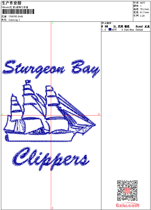 帆船 点此上传花版兑乐绣币/现金 emb花版参数: 大小:58.50 KB / 尺寸:62*70[毫米] / 针数:8077针 / 线色:1 / 格式:emb / 版本:6 版带文件需绣花软件方可打开,可配色打印导出各种格式或直接上机绣。如无绣花软件可下载1:1模拟效果图。 PNG图片信息:大小:0.1 (MB) /图宽*高:234x266(像素) 上传作者( 淘淘*** ) 获得乐绣币:10个 emb下载 1:1图下载 关闭 相似花型推荐: 国旗 蜗牛 修体美容 一级方程赛车 地铁subway 蛇 UBC 天鹅章仔 节能章仔 NOKIA 树 本田车标 LIGHTING章仔 球 武士章仔 上一个花样:吃人鱼 下一个花样:国旗