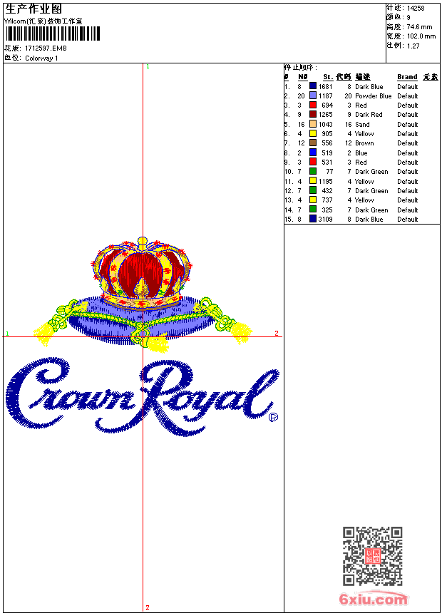皇冠 点此上传花版兑乐绣币/现金 emb花版参数: 大小:95.50 KB / 尺寸:102*75[毫米] / 针数:14258针 / 线色:9 / 格式:emb / 版本:6 版带文件需绣花软件方可打开,可配色打印导出各种格式或直接上机绣。如无绣花软件可下载1:1模拟效果图。 PNG图片信息:大小:0.1 (MB) /图宽*高:386x283(像素) 上传作者( 淘淘*** ) 获得乐绣币:10个 emb下载 1:1图下载 关闭 相似花型推荐: 现代hyundai 蛇章仔 鱼骨 7-eleven 7-11 top gun rage疯狂 马章仔 豹章仔 马 骰子 怪鸟 NB牛逼 马自达mazda 马车章仔 先锋pioneer 上一个花样:钩鱼杆 下一个花样:现代hyundai