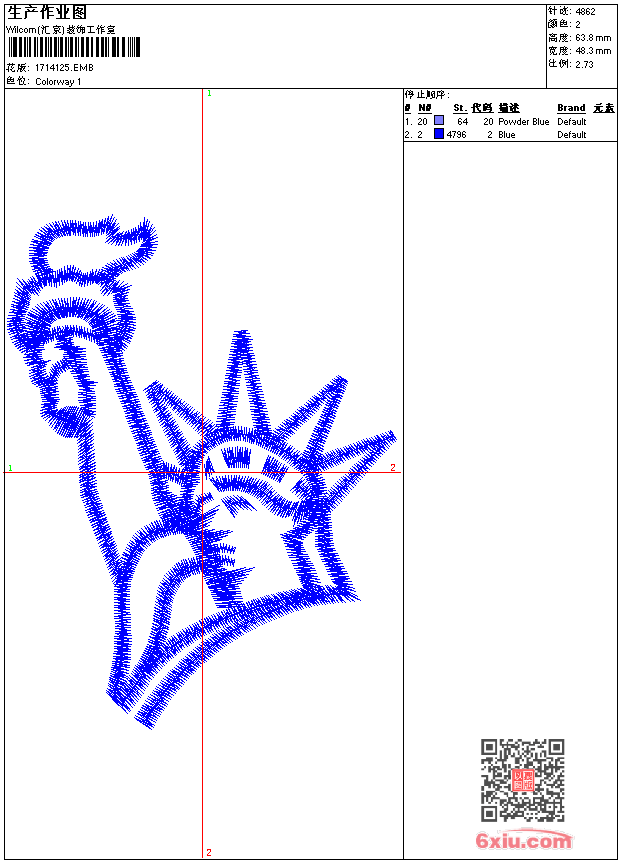 自由女神 点此上传花版兑乐绣币/现金 emb花版参数: 大小:33.00 KB / 尺寸:48*64[毫米] / 针数:4863针 / 线色:2 / 格式:emb / 版本:6 版带文件需绣花软件方可打开,可配色打印导出各种格式或直接上机绣。如无绣花软件可下载1:1模拟效果图。 PNG图片信息:大小:0.0 (MB) /图宽*高:183x242(像素) 上传作者( dydx*** ) 获得乐绣币:10个 emb下载 1:1图下载 关闭 相似花型推荐: 老虎 章仔 太阳 章仔 怪兽 海豚 足球 章仔 熊 章仔 章仔 章仔 章仔 直升飞机 圣母玛丽亚 上一个花样:飞机 下一个花样:老虎