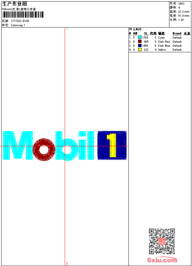 mobil美孚一号 点此上传花版兑乐绣币/现金 emb花版参数: 大小:22.00 KB / 尺寸:92*22[毫米] / 针数:3863针 / 线色:4 / 格式:emb / 版本:6 版带文件需绣花软件方可打开,可配色打印导出各种格式或直接上机绣。如无绣花软件可下载1:1模拟效果图。 PNG图片信息:大小:0.0 (MB) /图宽*高:348x84(像素) 上传作者( dydx*** ) 获得乐绣币:10个 emb下载 1:1图下载 关闭 相似花型推荐: 球队头盔 女神 SC字母 球队章仔 love贴布绣 花 骑马polo射箭 大眼猪 女鞋花 牡丹花民族服装上衣下摆 三熊骑自行车-卡通 抽象天鹅艺术 龙 鸟语花香 挖土机 上一个花样:章仔 下一个花样:球队头盔