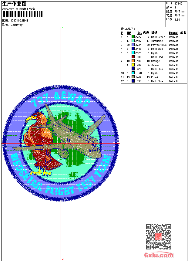 飞机鹰章仔 点此上传花版兑乐绣币/现金 emb花版参数: 大小:85.00 KB / 尺寸:71*71[毫米] / 针数:17645针 / 线色:9 / 格式:emb / 版本:6 版带文件需绣花软件方可打开,可配色打印导出各种格式或直接上机绣。如无绣花软件可下载1:1模拟效果图。 PNG图片信息:大小:0.1 (MB) /图宽*高:267x267(像素) 上传作者( vogu*** ) 获得乐绣币:10个 emb下载 1:1图下载 关闭 相似花型推荐: 罗马战士 圣诞狗 章仔 高尔夫 牡丹花工艺精品 苗族美女工艺精品 美女弹琴工艺精品 美女工艺精品 梅兰竹菊-竹工艺精品 梅花香自苦寒来工艺精品 伟大领袖毛主席工艺精品 橡树林乱针绣工艺精品 西藏风光乱针绣工艺精品 退思园林乱针绣工艺精品 苏州园林乱针绣工艺精品 上一个花样:雪佛来 下一个花样:罗马战士