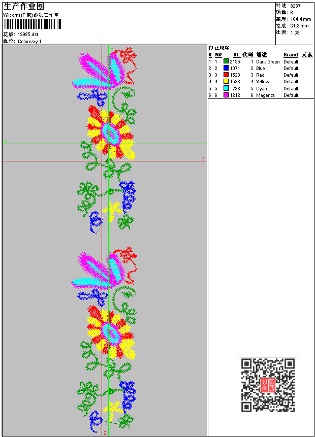 对称花 点此上传花版兑乐绣币/现金 dst花版参数: 大小:24.78 KB / 尺寸:31*184[毫米] / 针数:8287针 / 线色:6 / 格式:dst / 版本:6 版带文件需绣花软件方可打开,可配色打印导出各种格式或直接上机绣。如无绣花软件可下载1:1模拟效果图。 PNG图片信息:大小:0.1(MB) /图宽*高:119x698(像素) 上传作者( 天下*** ) 获得乐绣币:0个 dst下载 1:1图下载 关闭 相似花型推荐: 花卉图案 花边图案 小花图案 小花苗 抽象小花 线条花匹绣 简单小花卉 抽像图案 小花朵 单针绣 玫瑰花 三个中国结 三朵小花 吉祥云纹 葡萄 上一个花样:线条抽像花 下一个花样:花卉图案