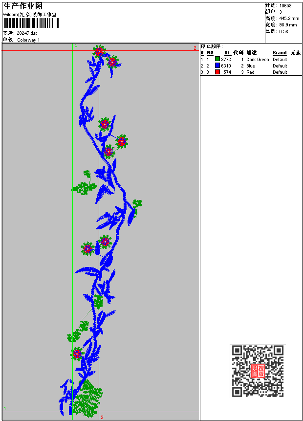 长花图案 点此上传花版兑乐绣币/现金 dst花版参数: 大小:31.73 KB / 尺寸:99*445[毫米] / 针数:10659针 / 线色:3 / 格式:dst / 版本:6 版带文件需绣花软件方可打开,可配色打印导出各种格式或直接上机绣。如无绣花软件可下载1:1模拟效果图。 PNG图片信息:大小:0.3(MB) /图宽*高:375x1684(像素) 上传作者( 天下*** ) 获得乐绣币:0个 dst下载 1:1图下载 关闭 相似花型推荐: 妖艳的下摆图案 简单的衣领图案 裤脚图案 抽像水滴裤袋刺绣图 窗帘刺绣图案_窗帘图案 心形贴布绣图案 窗帘图案 家家匹绣版带 衣领版带 家纺图案 水溶图案 家纺图案 长条花 排列的小花图案 床上用品图案 上一个花样:玫瑰花_花蕾_花蕊刺绣图 下一个花样:妖艳的下摆图案