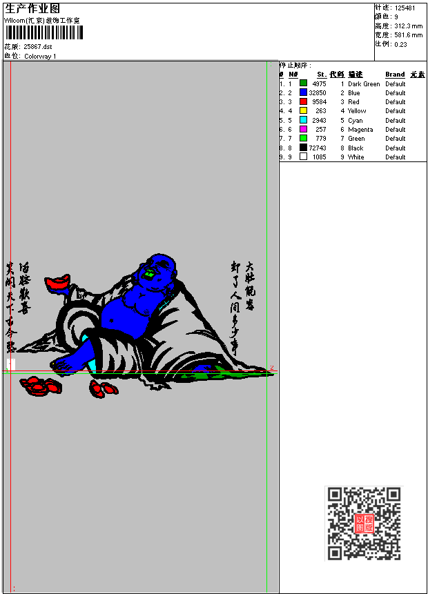 人物 弥勒佛_精品工艺版 点此上传花版兑乐绣币/现金 dst花版参数: 大小:368.12 KB / 尺寸:582*312[毫米] / 针数:125481针 / 线色:9 / 格式:dst / 版本:6 版带文件需绣花软件方可打开,可配色打印导出各种格式或直接上机绣。如无绣花软件可下载1:1模拟效果图。 PNG图片信息:大小:2.1(MB) /图宽*高:2200x1182(像素) 上传作者( 6165*** ) 获得乐绣币:50个 dst下载 1:1图下载 关闭 相似花型推荐: 鲲鹏展翅 鹰 大展宠图 美女人物 背影精品十字绣 小狗贴布绣_EMB格式 樱桃图案 树叶图案_emb格式 桃心_emb格式 窗帘版带__emb格式 八瓣花_emb格式 懒羊羊_emb格式 皇冠 骑马LOGO图 绳子绣蝴蝶_绳绣版带 y0355.DST_水溶版带 盘带_三合一图案 玫瑰女神全绣腰靠 上一个花样:唐装龙_吉祥图案 下一个花样:鲲鹏展翅 鹰 大展宠图