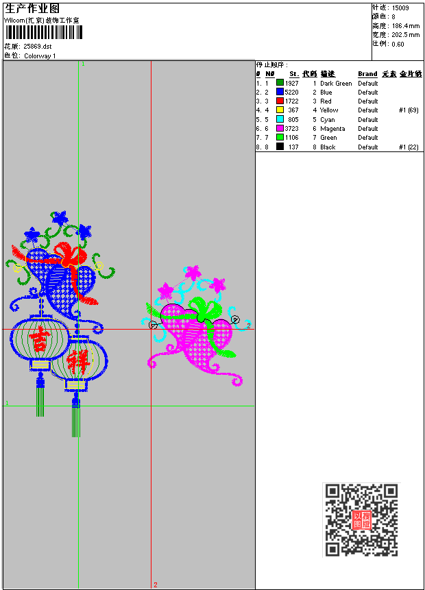 珠片灯笼花_亮片图案下载 点此上传花版兑乐绣币/现金 dst花版参数: 大小:44.47 KB / 尺寸:203*186[毫米] / 针数:15009针 / 线色:8 / 格式:dst / 版本:6 版带文件需绣花软件方可打开,可配色打印导出各种格式或直接上机绣。如无绣花软件可下载1:1模拟效果图。 PNG图片信息:大小:0.3(MB) /图宽*高:766x706(像素) 上传作者( 6165*** ) 获得乐绣币:3个 dst下载 1:1图下载 关闭 相似花型推荐: 唐装龙_吉祥图案 人物 弥勒佛_精品工艺版 鲲鹏展翅 鹰 大展宠图 美女人物 背影精品十字绣 小狗贴布绣_EMB格式 樱桃图案 树叶图案_emb格式 桃心_emb格式 窗帘版带__emb格式 八瓣花_emb格式 懒羊羊_emb格式 皇冠 骑马LOGO图 绳子绣蝴蝶_绳绣版带 y0355.DST_水溶版带 上一个花样:sky_衣领版带 下一个花样:唐装龙_吉祥图案