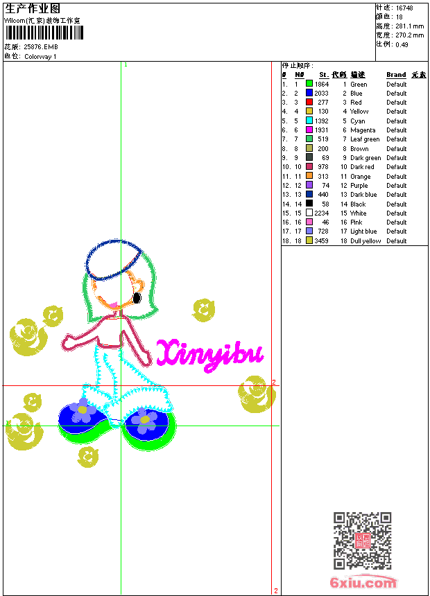 花季少女_卡通贴布图案 点此上传花版兑乐绣币/现金 emb花版参数: 大小:85.50 KB / 尺寸:270*281[毫米] / 针数:16748针 / 线色:18 / 格式:emb / 版本:7 版带文件需绣花软件方可打开,可配色打印导出各种格式或直接上机绣。如无绣花软件可下载1:1模拟效果图。 PNG图片信息:大小:0.5 (MB) /图宽*高:1023x1064(像素) 上传作者( ylf5*** ) 获得乐绣币:10个 emb下载 1:1图下载 关闭 相似花型推荐: 螺旋花蕊 国宝大熊猫_图案_EMB格式 sky_衣领版带 珠片灯笼花_亮片图案下载 唐装龙_吉祥图案 人物 弥勒佛_精品工艺版 鲲鹏展翅 鹰 大展宠图 美女人物 背影精品十字绣 小狗贴布绣_EMB格式 樱桃图案 树叶图案_emb格式 桃心_emb格式 窗帘版带__emb格式 八瓣花_emb格式 懒羊羊_emb格式 上一个花样:心型花 下一个花样:螺旋花蕊