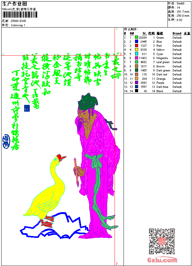 王羲之咏鹅 点此上传花版兑乐绣币/现金 emb花版参数: 大小:199.50 KB / 尺寸:250*392[毫米] / 针数:59495针 / 线色:14 / 格式:emb / 版本:7 版带文件需绣花软件方可打开,可配色打印导出各种格式或直接上机绣。如无绣花软件可下载1:1模拟效果图。 PNG图片信息:大小:1.1 (MB) /图宽*高:946x1482(像素) 上传作者( liuy*** ) 获得乐绣币:10个 emb下载 1:1图下载 关闭 相似花型推荐: 仿手绣_电脑图案 心型花 花季少女_卡通贴布图案 螺旋花蕊 国宝大熊猫_图案_EMB格式 sky_衣领版带 珠片灯笼花_亮片图案下载 唐装龙_吉祥图案 人物 弥勒佛_精品工艺版 鲲鹏展翅 鹰 大展宠图 美女人物 背影精品十字绣 小狗贴布绣_EMB格式 樱桃图案 树叶图案_emb格式 桃心_emb格式 上一个花样:水果图案 下一个花样:仿手绣_电脑图案
