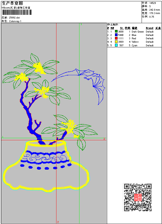 花瓶图案_盆景图案 点此上传花版兑乐绣币/现金 dst花版参数: 大小:43.07 KB / 尺寸:178*243[毫米] / 针数:14529针 / 线色:5 / 格式:dst / 版本:6 版带文件需绣花软件方可打开,可配色打印导出各种格式或直接上机绣。如无绣花软件可下载1:1模拟效果图。 PNG图片信息:大小:0.3(MB) /图宽*高:675x919(像素) 上传作者( maju*** ) 获得乐绣币:0个 dst下载 1:1图下载 关闭 相似花型推荐: 小猫钓鱼图案_EMB格式 米老鼠+字母图案_EMB格式 香香_花卉图案 鸟语花香_大花图案 山里的房子 仙鹤_工艺版_挂画版 米奇图案_米老鼠图案 鞋垫图案_爱情 PD-5064a_盘带图案_特种图案 水果图案 王羲之咏鹅 仿手绣_电脑图案 心型花 花季少女_卡通贴布图案 螺旋花蕊 上一个花样:椰子树_海滩图案_EMB格式 下一个花样:小猫钓鱼图案_EMB格式