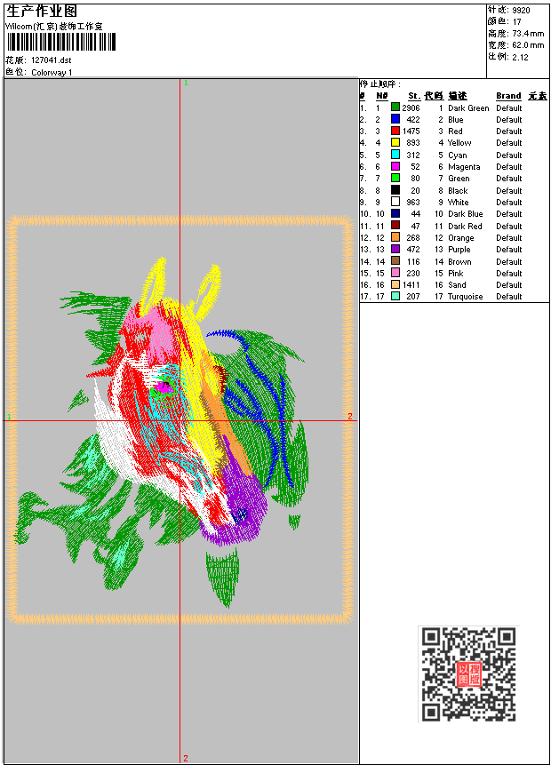 马 点此上传花版兑乐绣币/现金 dst花版参数: 大小:29.56 KB / 尺寸:62*73[毫米] / 针数:9920针 / 线色:17 / 格式:dst / 版本:6 版带文件需绣花软件方可打开,可配色打印导出各种格式或直接上机绣。如无绣花软件可下载1:1模拟效果图。 PNG图片信息:大小:0.1(MB) /图宽*高:235x278(像素) 上传作者( digi*** ) 获得乐绣币:0个 dst下载 1:1图下载 关闭 相似花型推荐: 吉祥如意-书法图案 龙的传人_文字图案 吉祥的花瓶图案 中国_古典图案 牛气冲天_唐装图案 麒麟_吉祥图案 狮子_LOGO图案 三匹马 单龙_龙的图案 单龙戏珠_吉祥龙凤图案 蝶花 仙鹤_吉祥图案 大力水手_童装 寿_挂画工艺版版 周总理_乱针绣 上一个花样:熊博士_卡通图案 下一个花样:吉祥如意-书法图案