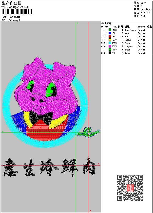 猪先生_童装图案 点此上传花版兑乐绣币/现金 dst花版参数: 大小:24.75 KB / 尺寸:83*102[毫米] / 针数:8277针 / 线色:8 / 格式:dst / 版本:6 版带文件需绣花软件方可打开,可配色打印导出各种格式或直接上机绣。如无绣花软件可下载1:1模拟效果图。 PNG图片信息:大小:0.2(MB) /图宽*高:316x388(像素) 上传作者( jinz*** ) 获得乐绣币:0个 dst下载 1:1图下载 关闭 相似花型推荐: 吉祥如意_喜庆吉祥图案 雄鹰 熊博士_卡通图案 马 吉祥如意-书法图案 龙的传人_文字图案 吉祥的花瓶图案 中国_古典图案 牛气冲天_唐装图案 麒麟_吉祥图案 狮子_LOGO图案 三匹马 单龙_龙的图案 单龙戏珠_吉祥龙凤图案 蝶花 上一个花样:袖标_章仔 下一个花样:吉祥如意_喜庆吉祥图案