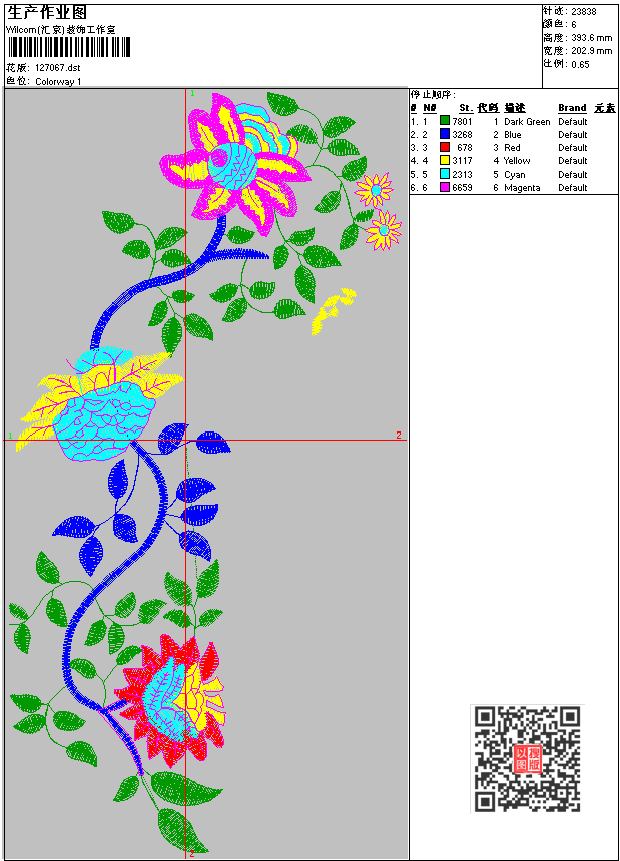 上衣大花 点此上传花版兑乐绣币/现金 dst花版参数: 大小:70.34 KB / 尺寸:203*394[毫米] / 针数:23838针 / 线色:6 / 格式:dst / 版本:6 版带文件需绣花软件方可打开,可配色打印导出各种格式或直接上机绣。如无绣花软件可下载1:1模拟效果图。 PNG图片信息:大小:0.7(MB) /图宽*高:768x1489(像素) 上传作者( nant*** ) 获得乐绣币:1个 dst下载 1:1图下载 关闭 相似花型推荐: 蛇_眼镜蛇图案 珠片图案_亮片图案 女装衣领大花_EMB原版格式 LOGO_标志图案_EMB原版文件 上衣2_女装大花图案 上衣花 水溶马夹后背_水溶图案 水溶花 马到功成_挂画图案 人物 牛 酒 牧童遥指杏花村_精品刺绣图 菊_精品刺绣版带图案 红莲鸳鸯_精品版 观音坐莲_工艺版 贴标_LOGO章仔 童标_章仔刺绣图案 上一个花样:童装花 下一个花样:蛇_眼镜蛇图案