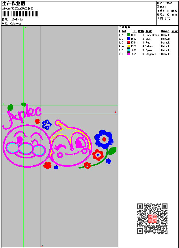 卡通图案 点此上传花版兑乐绣币/现金 dst花版参数: 大小:46.39 KB / 尺寸:190*111[毫米] / 针数:15663针 / 线色:6 / 格式:dst / 版本:6 版带文件需绣花软件方可打开,可配色打印导出各种格式或直接上机绣。如无绣花软件可下载1:1模拟效果图。 PNG图片信息:大小:0.2(MB) /图宽*高:720x422(像素) 上传作者( 王洪*** ) 获得乐绣币:10个 dst下载 1:1图下载 关闭 相似花型推荐: 可爱的童装图案 卡通_字母图案 大花_时尚花卉刺绣图案 小女孩_童装图案 卡通字母图案 卡通章仔图案 章仔卡通刺绣图案 可爱的小娃娃_童装图案 童装卡通刺绣版带 童装卡通版带图案 章仔标志图案 可爱的小姑娘图案 LOGO章仔刺绣图案 章仔图案 小狗章仔_LOGO字母图案 上一个花样:小熊图案 下一个花样:可爱的童装图案