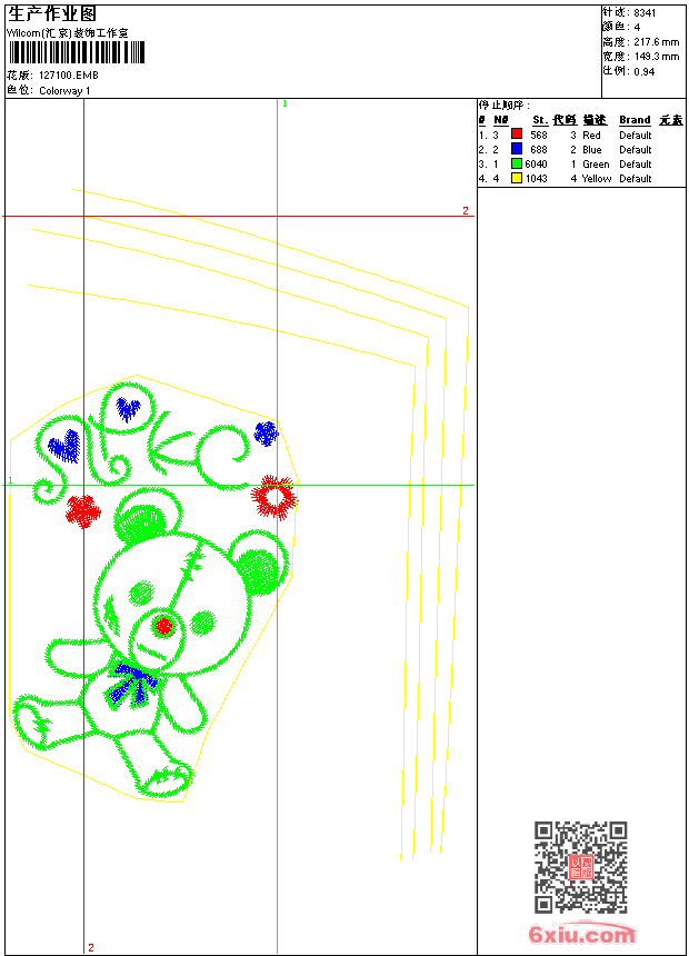 小熊图案 点此上传花版兑乐绣币/现金 emb花版参数: 大小:732.50 KB / 尺寸:149*218[毫米] / 针数:8341针 / 线色:4 / 格式:emb / 版本:7 版带文件需绣花软件方可打开,可配色打印导出各种格式或直接上机绣。如无绣花软件可下载1:1模拟效果图。 PNG图片信息:大小:0.2 (MB) /图宽*高:565x823(像素) 上传作者( 王洪*** ) 获得乐绣币:10个 emb下载 1:1图下载 关闭 相似花型推荐: 卡通图案 可爱的童装图案 卡通_字母图案 大花_时尚花卉刺绣图案 小女孩_童装图案 卡通字母图案 卡通章仔图案 章仔卡通刺绣图案 可爱的小娃娃_童装图案 童装卡通刺绣版带 童装卡通版带图案 章仔标志图案 可爱的小姑娘图案 LOGO章仔刺绣图案 章仔图案 上一个花样:小花+卡通童装图案 下一个花样:卡通图案