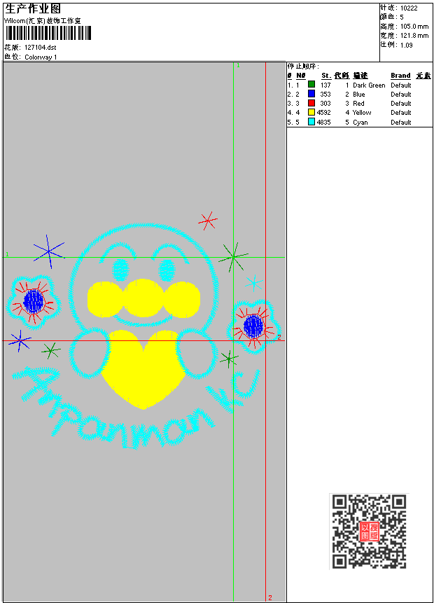 卡通形象人物刺绣图案 点此上传花版兑乐绣币/现金 dst花版参数: 大小:30.45 KB / 尺寸:122*105[毫米] / 针数:10222针 / 线色:5 / 格式:dst / 版本:6 版带文件需绣花软件方可打开,可配色打印导出各种格式或直接上机绣。如无绣花软件可下载1:1模拟效果图。 PNG图片信息:大小:0.1(MB) /图宽*高:461x398(像素) 上传作者( 王洪*** ) 获得乐绣币:10个 dst下载 1:1图下载 关闭 相似花型推荐: 卡通人物图案 小花+卡通人物图案 小花+卡通童装图案 小熊图案 卡通图案 可爱的童装图案 卡通_字母图案 大花_时尚花卉刺绣图案 小女孩_童装图案 卡通字母图案 卡通章仔图案 章仔卡通刺绣图案 可爱的小娃娃_童装图案 童装卡通刺绣版带 童装卡通版带图案 上一个花样:卡通童装图案 下一个花样:卡通人物图案