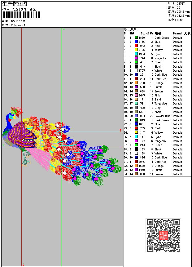 孔雀_工艺挂画版 点此上传花版兑乐绣币/现金 dst花版参数: 大小:116.33 KB / 尺寸:312*208[毫米] / 针数:39537针 / 线色:20 / 格式:dst / 版本:6 版带文件需绣花软件方可打开,可配色打印导出各种格式或直接上机绣。如无绣花软件可下载1:1模拟效果图。 PNG图片信息:大小:0.9(MB) /图宽*高:1182x788(像素) 上传作者( 9795*** ) 获得乐绣币:10个 dst下载 1:1图下载 关闭 相似花型推荐: 一帆风顺_刺绣工艺花版 关公_刺绣工艺精品 字母图案 草莓图案 兔子图案 大花 小猴子_卡通刺绣图案 小花图案 猛虎下山图_工艺版 卡通图案_童装图案 小猫_动物图案 卡通童装图案 卡通形象人物刺绣图案 卡通人物图案 小花+卡通人物图案 上一个花样:孔雀开屏_精品工艺花版 下一个花样:一帆风顺_刺绣工艺花版