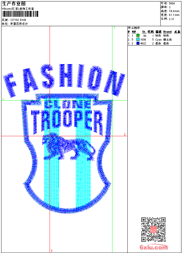 狮子_章仔图案_EMB文件 点此上传花版兑乐绣币/现金 emb花版参数: 大小:45.50 KB / 尺寸:61*74[毫米] / 针数:5808针 / 线色:3 / 格式:emb / 版本:9 版带文件需绣花软件方可打开,可配色打印导出各种格式或直接上机绣。如无绣花软件可下载1:1模拟效果图。 PNG图片信息:大小:0.1 (MB) /图宽*高:232x282(像素) 上传作者( hao8*** ) 获得乐绣币:5个 emb下载 1:1图下载 关闭 相似花型推荐: 鹦鹉_工艺版 树叶_单色花卉图案 窗帘花图案 花朵图案_花朵图案 水溶图案_馬甲图 简单小花图案 卡通心形字母刺绣图案 卡通熊+彩虹+字母的图案 对称花卉刺绣图案 龙_英文字母图案 标志图案 标志图案_LOGO图案 公仔_米老鼠图案_刺绣图案 狼迹天涯 强者风尚 十字绣图案_电脑十字绣 上一个花样:马的图案_EMB格式文件 下一个花样:鹦鹉_工艺版