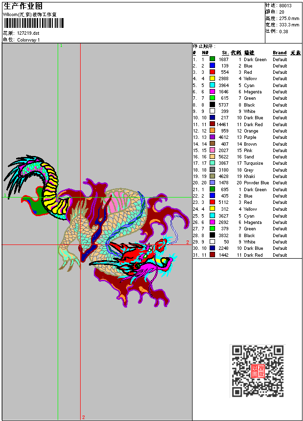 龙的图案_吉祥龙刺绣图案 点此上传花版兑乐绣币/现金 dst花版参数: 大小:234.91 KB / 尺寸:333*275[毫米] / 针数:80013针 / 线色:20 / 格式:dst / 版本:6 版带文件需绣花软件方可打开,可配色打印导出各种格式或直接上机绣。如无绣花软件可下载1:1模拟效果图。 PNG图片信息:大小:1.2(MB) /图宽*高:1261x1041(像素) 上传作者( 6154*** ) 获得乐绣币:10个 dst下载 1:1图下载 关闭 相似花型推荐: 鹰_老鹰刺绣图案_老鹰图 扑克图案_纸牌图案 奥特曼图案_卡通奥特曼图案 火影忍者,雏田_图案 飞机图案_童装字母图案 公仔_米老鼠图案_唐老鸭图案 豹_贴布字母图案 虎|老虎_版带,虎图精品 童装卡通贴布熊图案_童装贴布图案 心形图案 清明上河图_emb 工艺精品版 飞跃龙门_机的工艺品_版 龙风_电脑工艺版 龙风呈祥_精品工艺版 牡丹花 华堂春暖_精品工艺刺绣图案 上一个花样:火影忍者 ,雏田 2 下一个花样:鹰_老鹰刺绣图案_老鹰图