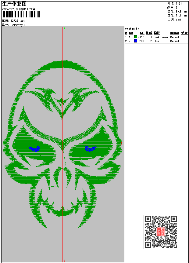 骷髅头图案_刺绣图案 点此上传花版兑乐绣币/现金 dst花版参数: 大小:21.96 KB / 尺寸:71*100[毫米] / 针数:7323针 / 线色:2 / 格式:dst / 版本:6 版带文件需绣花软件方可打开,可配色打印导出各种格式或直接上机绣。如无绣花软件可下载1:1模拟效果图。 PNG图片信息:大小:0.1(MB) /图宽*高:269x377(像素) 上传作者( love*** ) 获得乐绣币:1个 dst下载 1:1图下载 关闭 相似花型推荐: 火影忍者 ,雏田 2 龙的图案_吉祥龙刺绣图案 鹰_老鹰刺绣图案_老鹰图 扑克图案_纸牌图案 奥特曼图案_卡通奥特曼图案 火影忍者,雏田_图案 飞机图案_童装字母图案 公仔_米老鼠图案_唐老鸭图案 豹_贴布字母图案 虎|老虎_版带,虎图精品 童装卡通贴布熊图案_童装贴布图案 心形图案 清明上河图_emb 工艺精品版 飞跃龙门_机的工艺品_版 龙风_电脑工艺版 上一个花样:小女孩_童装卡通图案 下一个花样:火影忍者 ,雏田 2