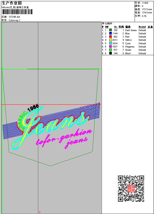 裤袋图案_口袋图案_刺绣图案 点此上传花版兑乐绣币/现金 dst花版参数: 大小:34.01 KB / 尺寸:175*174[毫米] / 针数:11438针 / 线色:8 / 格式:dst / 版本:6 版带文件需绣花软件方可打开,可配色打印导出各种格式或直接上机绣。如无绣花软件可下载1:1模拟效果图。 PNG图片信息:大小:0.2(MB) /图宽*高:662x657(像素) 上传作者( 6154*** ) 获得乐绣币:3个 dst下载 1:1图下载 关闭 相似花型推荐: 中国汉字图案_刺绣图案 章仔刺绣图案_图案 英文字母图案_图案_刺绣图案 商标图案_商标图案_刺绣图案 小熊_贴布小熊图案 现代_现代汽车标志_汽车标志刺绣图案 小女孩_卡通刺绣图案 喜羊羊_童装刺绣图案_卡通图案 领口花_领口刺绣图案 服装大花图案 玫瑰花_工艺版 熊_贴布图案_熊图案 梅花图_梅花图案 章仔刺绣图案 服装牛仔图案 上一个花样:字母图案_刺绣图案_运动图案 下一个花样:中国汉字图案_刺绣图案