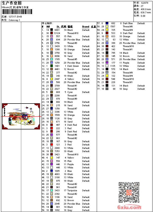 - emb花版参数: 大小:1.32 MB / 尺寸:639*438[毫米] / 针数:122879针 / 线色:27 / 格式:emb / 版本:9