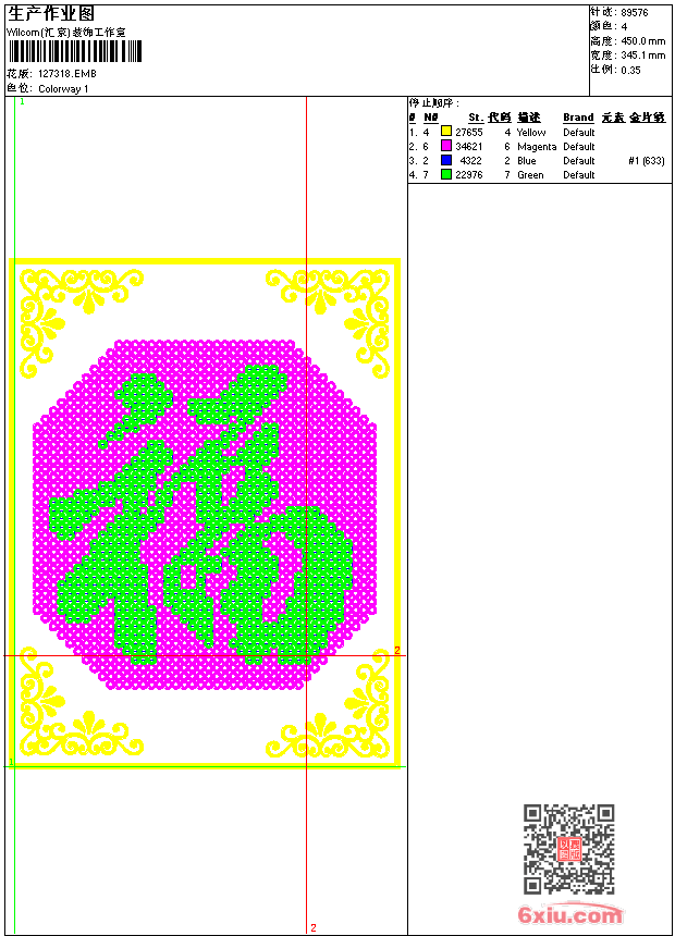 - emb花版参数: 大小:230.00 KB / 尺寸:345*450[毫米] / 针数:89576针 / 线色:4 / 格式:emb / 版本:9
