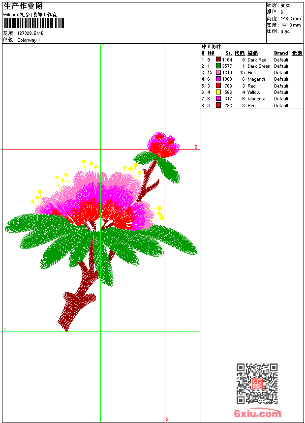 - emb花版参数: 大小:58.00 KB / 尺寸:141*146[毫米] / 针数:9065针 / 线色:6 / 格式:emb / 版本:8