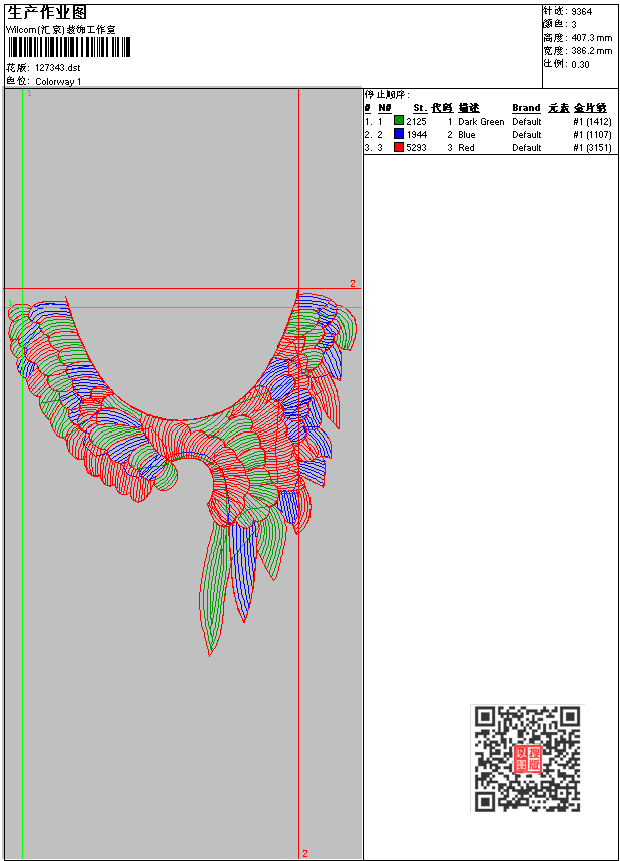 - dst花版参数: 大小:27.93 KB / 尺寸:386*407[毫米] / 针数:9364针 / 线色:3 / 格式:dst / 版本:6