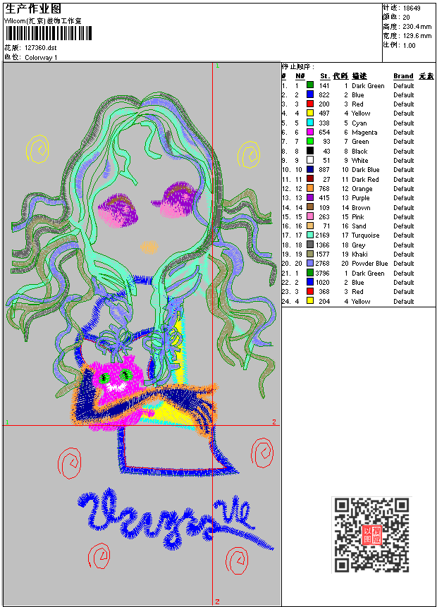 - dst花版参数: 大小:55.14 KB / 尺寸:130*230[毫米] / 针数:18649针 / 线色:20 / 格式:dst / 版本:6