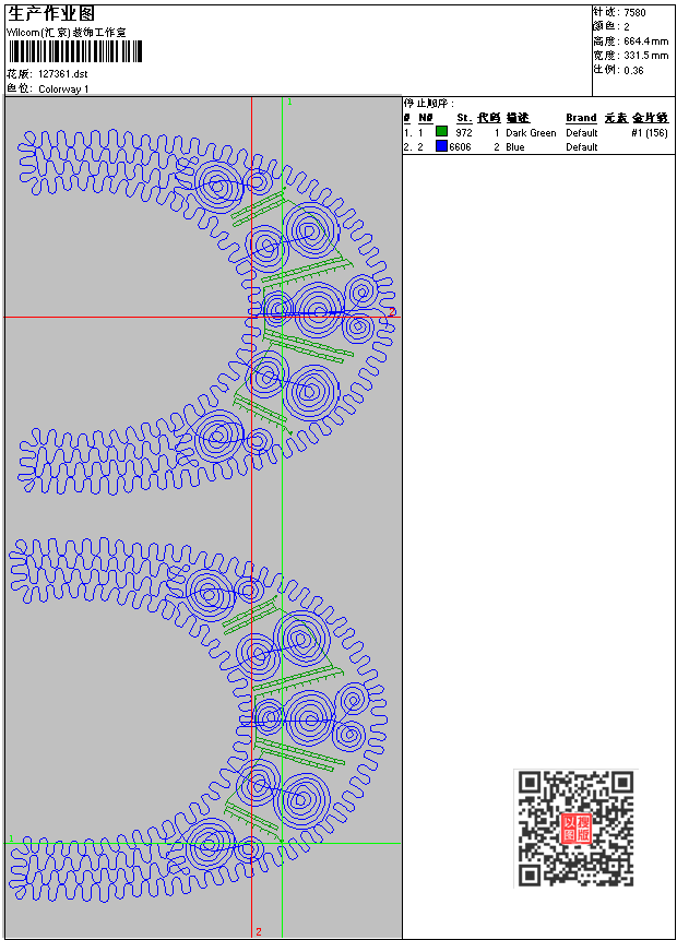 - dst花版参数: 大小:22.71 KB / 尺寸:332*664[毫米] / 针数:7580针 / 线色:2 / 格式:dst / 版本:6
