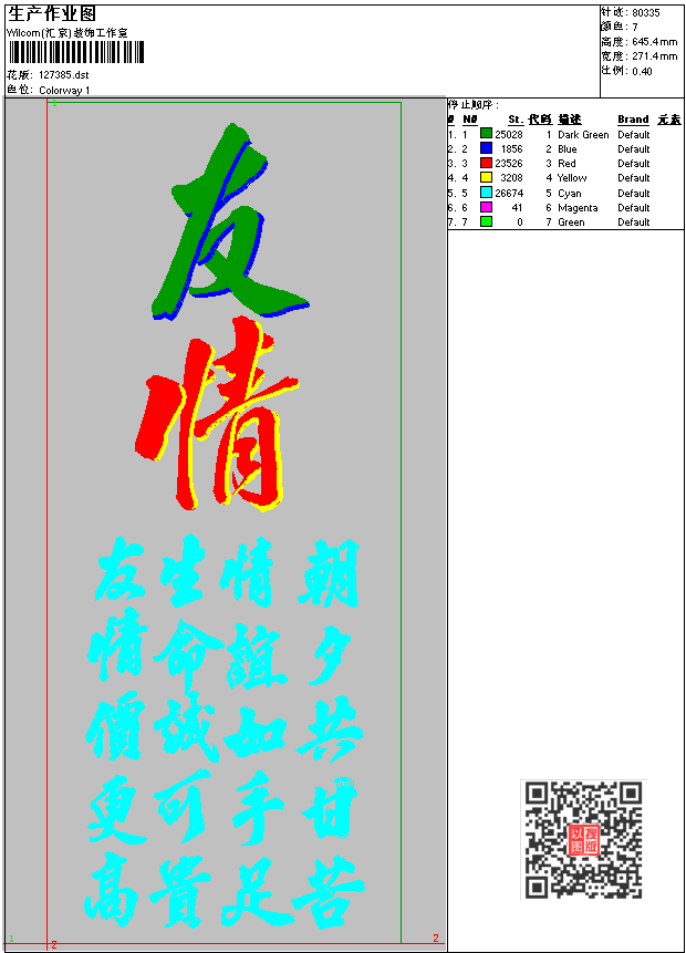 - dst花版参数: 大小:235.86 KB / 尺寸:271*645[毫米] / 针数:80335针 / 线色:7 / 格式:dst / 版本:6